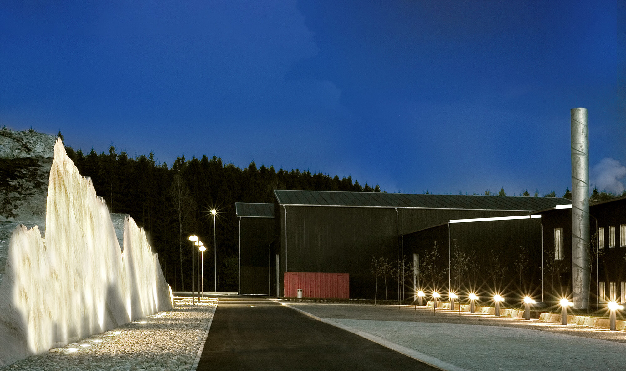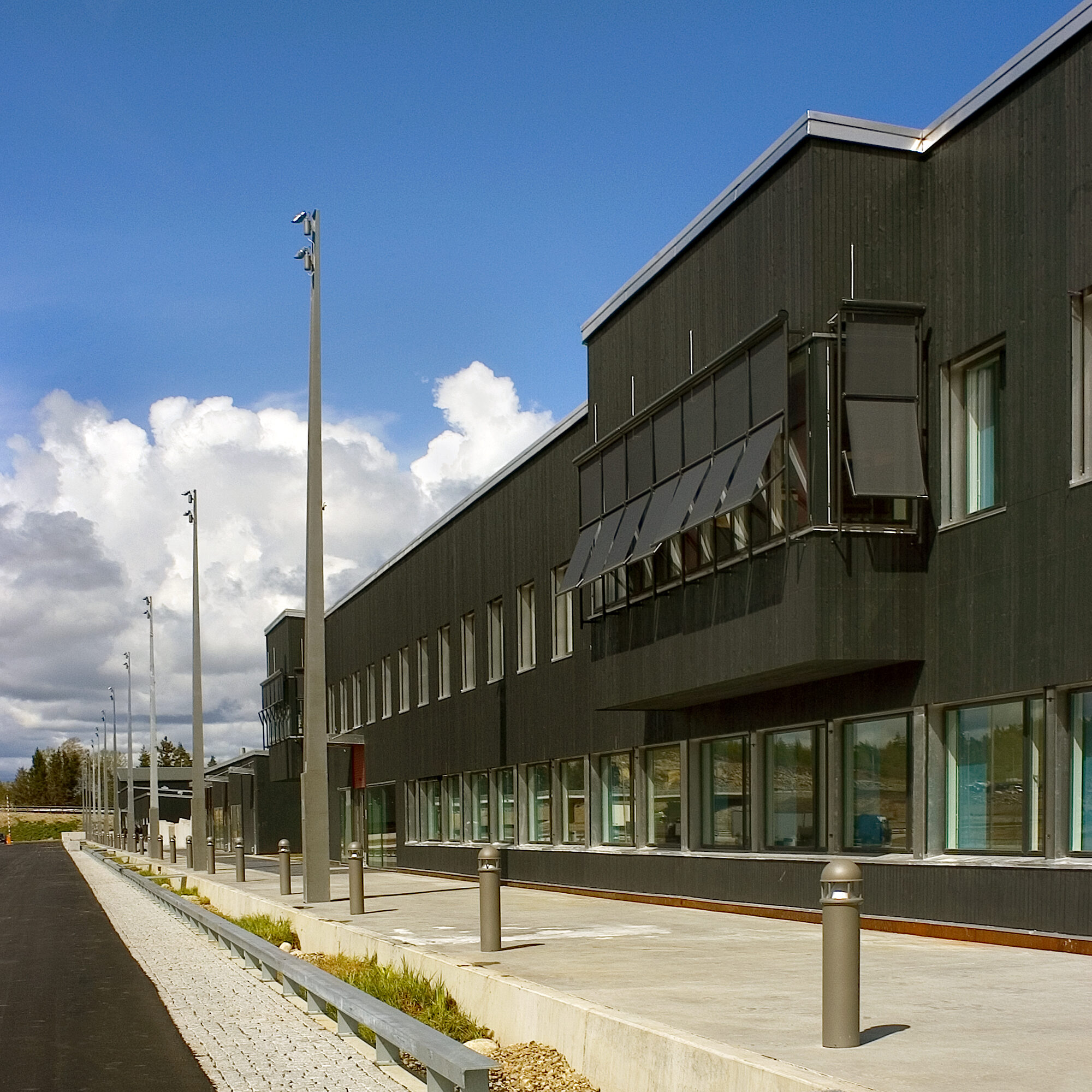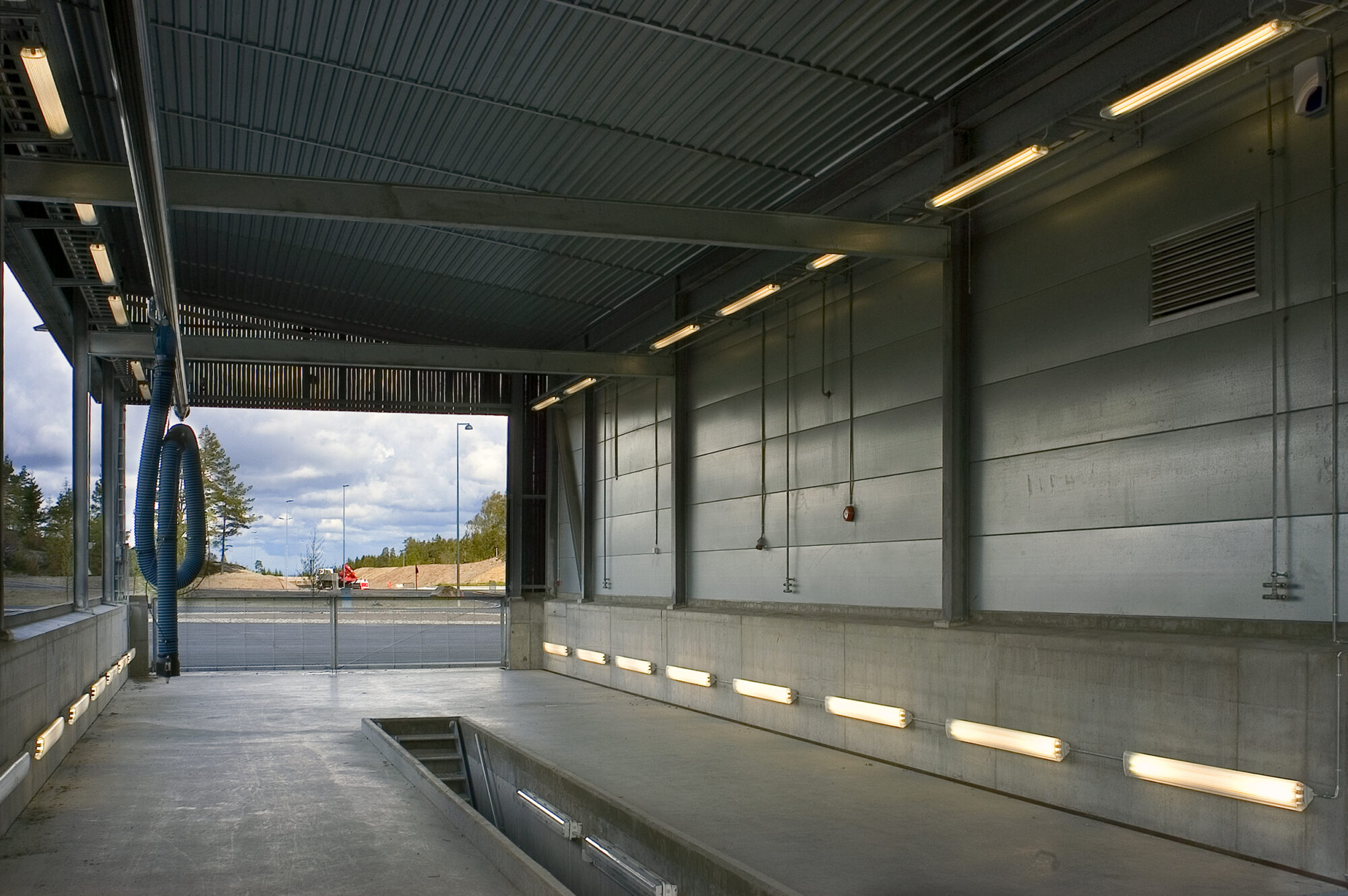 Enkelt kjøremønster og god oversikt har vært styrende for utformingen av området som bl.a. skal betjene et vogntog hvert tredje minutt døgnet rundt, året rundt. Store asfaltflater har åpent overvannsystem med kanaler og fordrøyningsbasseng som del av landskapsopparbeidingen