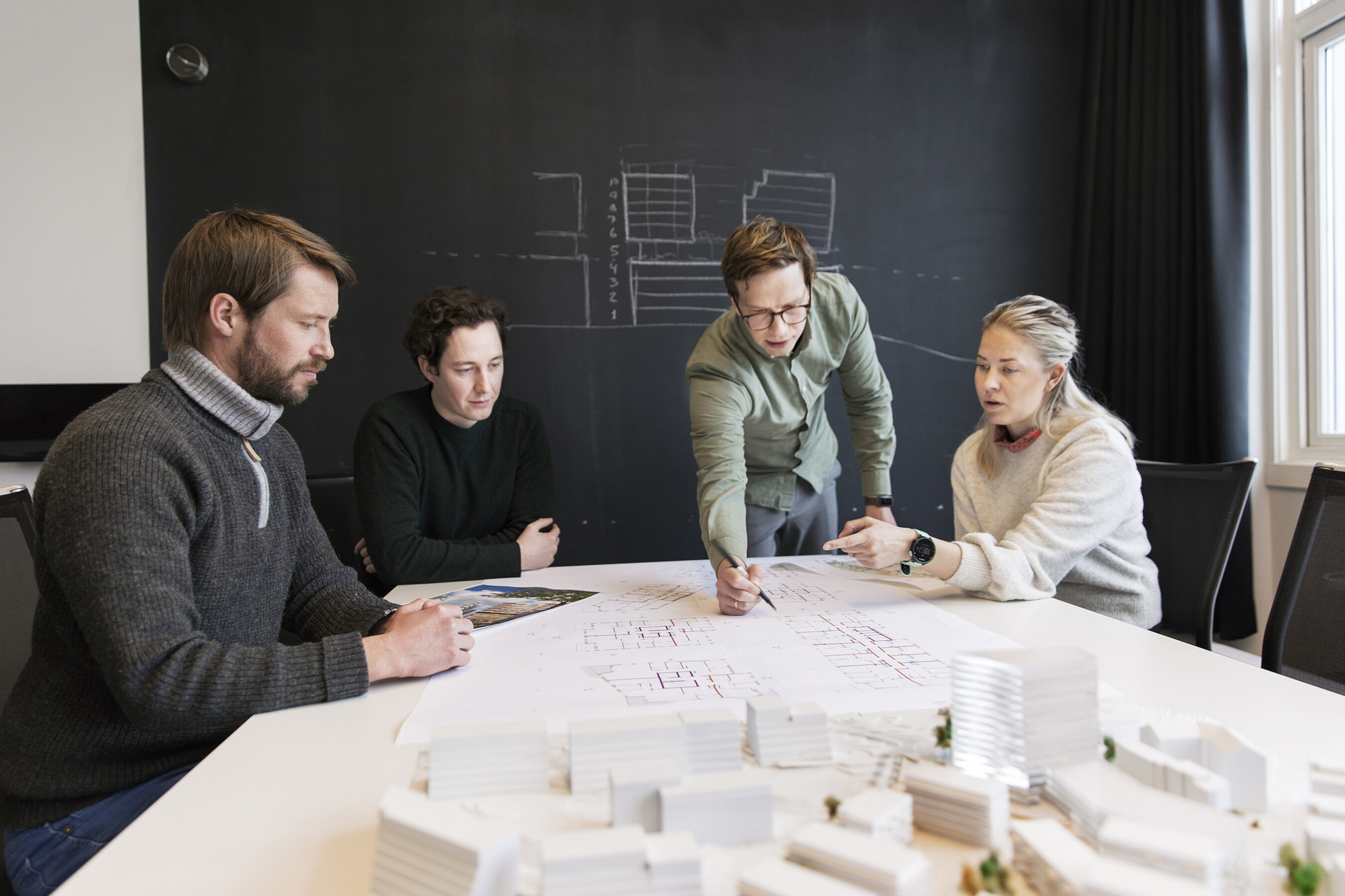 – Det hele kan noen ganger oppleves litt som et gedigent lappeteppe, utbryter Erlend og forklarer at reisen fra et parallelloppdrag eller konkurranse, til ferdigstilt prosjekt, nesten uten unntak er lang, spesielt i de større byutviklingsprosjektene.