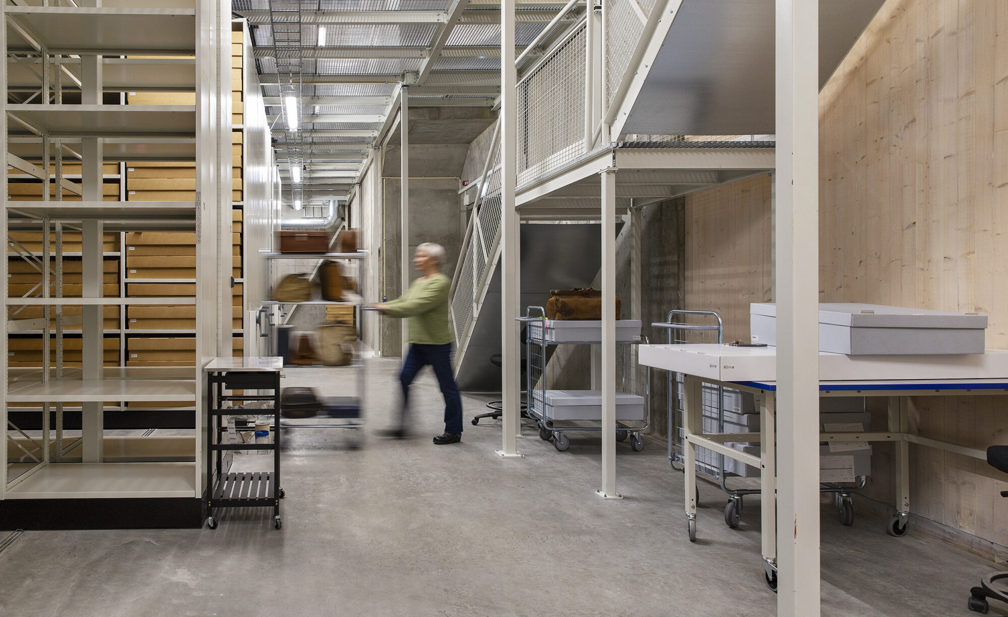 Det nye bygget rommer kontorlokaler for Annos administrasjon, konserveringsverksteder og klimastyrte gjenstandsmagasiner på til sammen 5000 kvadratmeter.