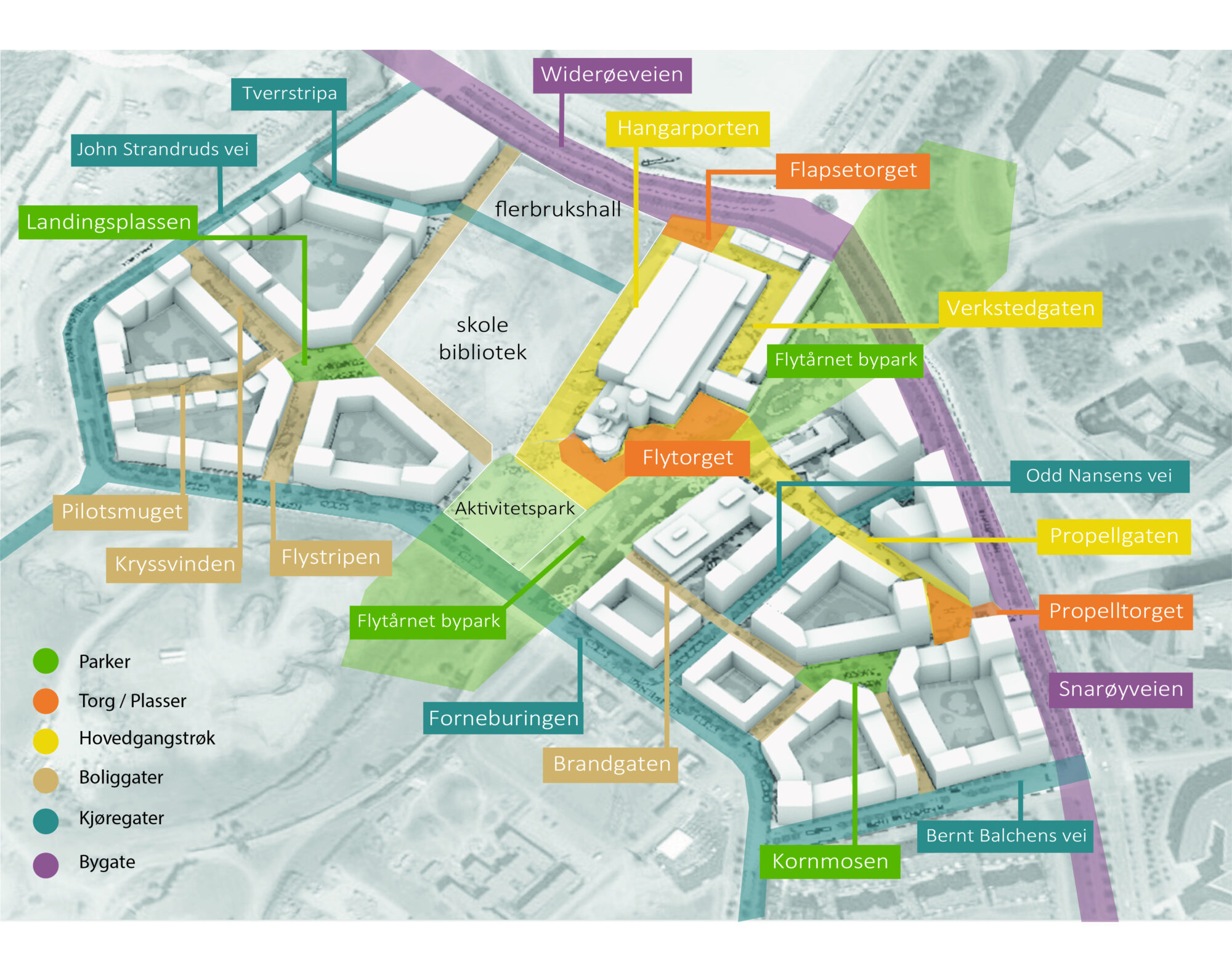 Planen skal tilrettelegge for at området skal være et forbilde for klimasmart byutvikling og et pilotprosjekt for FutureBuilt. I tillegg skal utviklingen av Flytårnområdet bygge videre på stedets identitet som tidligere Flyplass og kulturdestinasjon. Med nye møteplasser, godt bomiljø og sosiale og kulturelle tilbud skal Flytårnområdet bli til et sosialt bærekraftig område. Planen legger opp til en videreføring av kulturmiljøet som allerede er etablert i flytårnbebyggelsen og at midtområdet rundt Flytårnet etableres som et urbant og kulturelt tyngdepunkt.