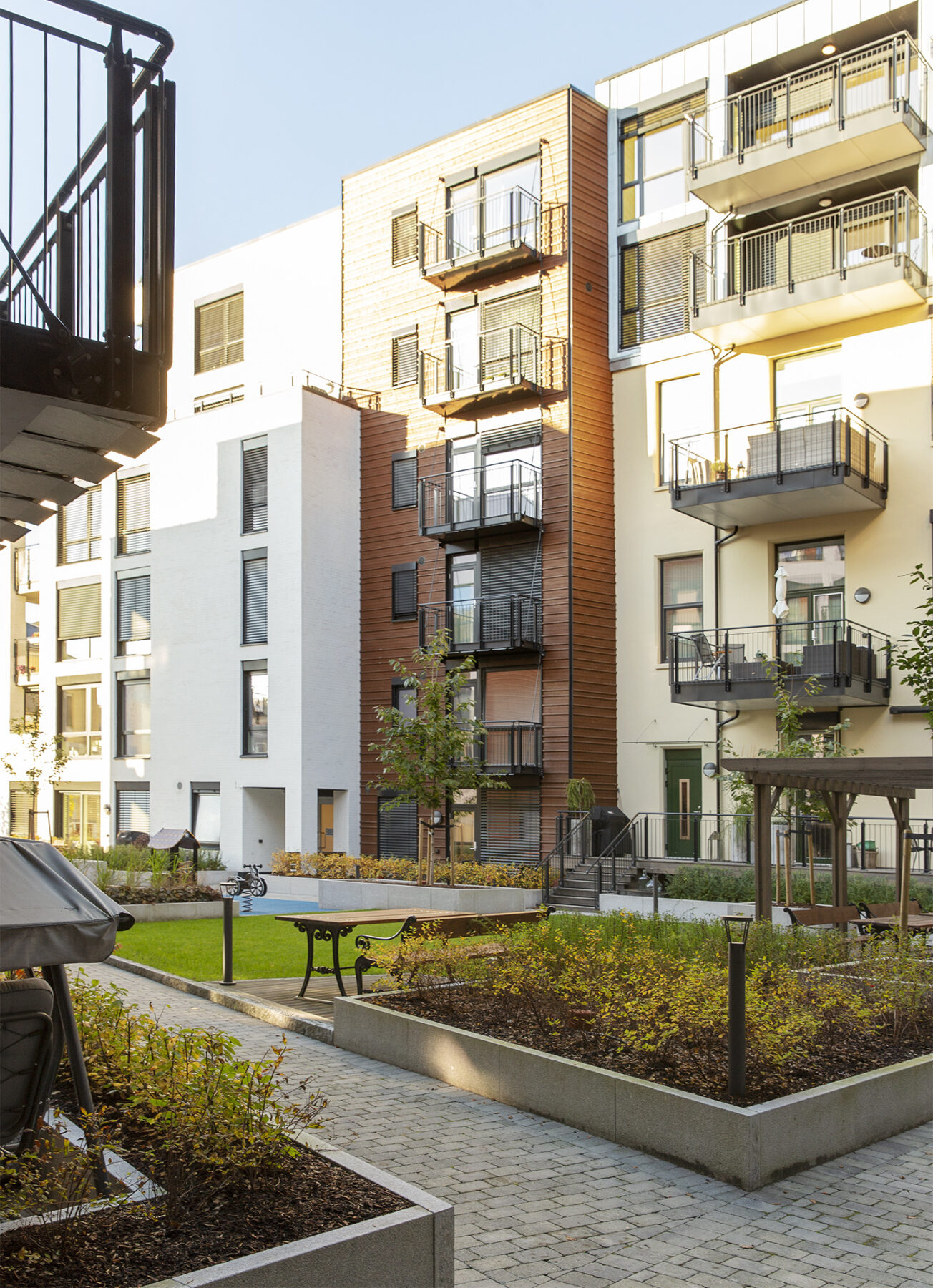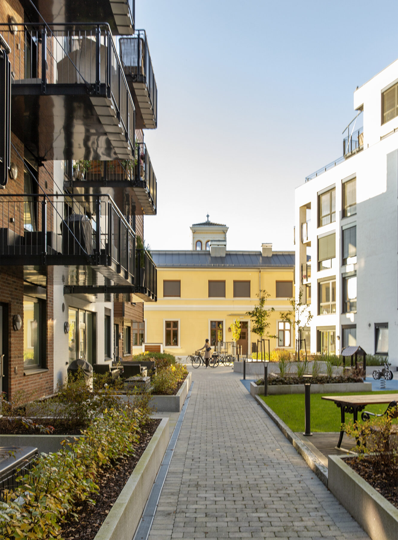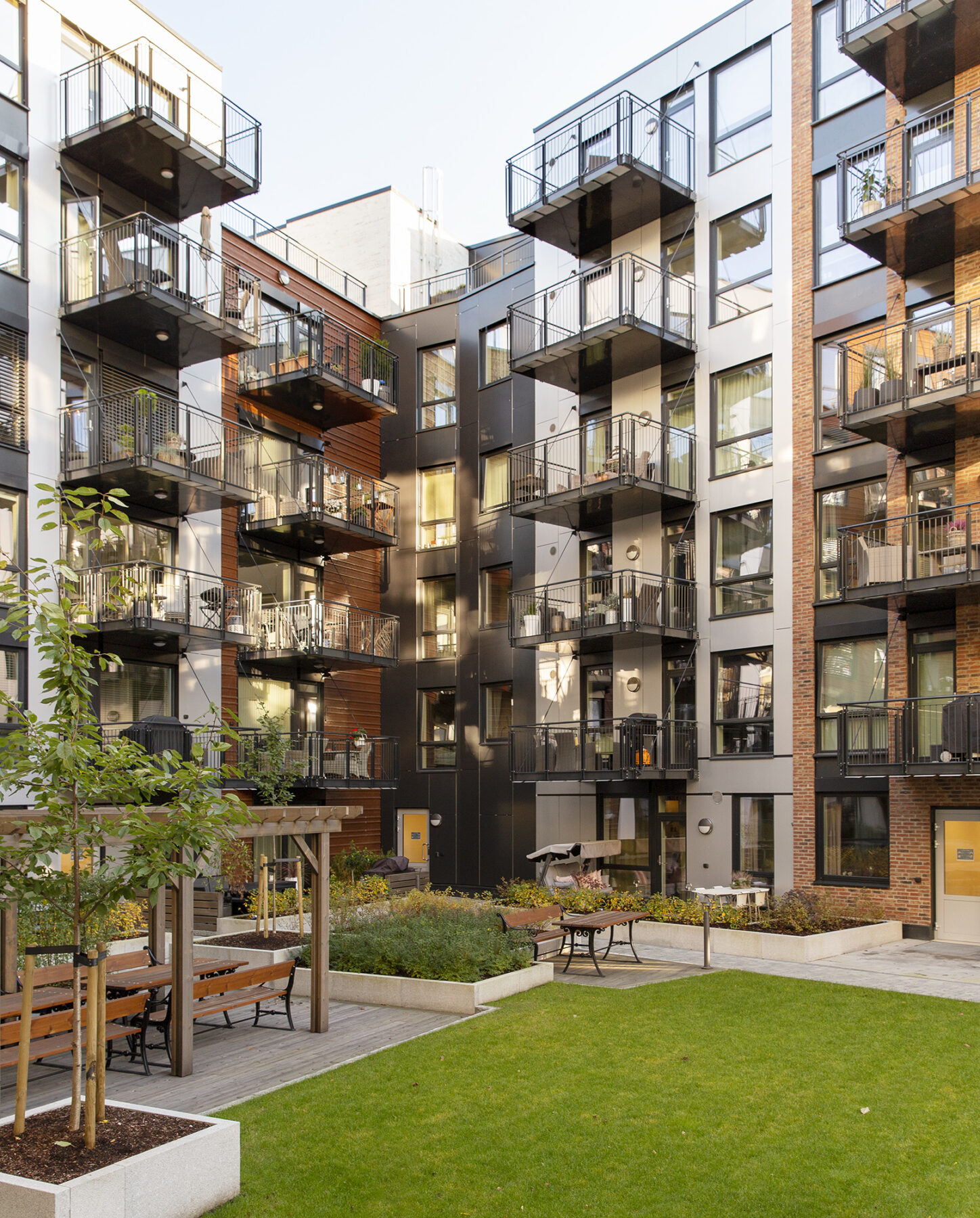 Kvartalet er organisert som et klassisk kvartal med gjennomgående portrom. Inngangene ligger i portrommene for å unngå unødvendige korridorer i byggene. Bebyggelsen er variert i høyde for å skape et spennende og skjermet taklandskap og slippe sol inn i bakgården. Prosjektet består av 82 leiligheter, 77 p-plasser, velværeområde og fellesområder.