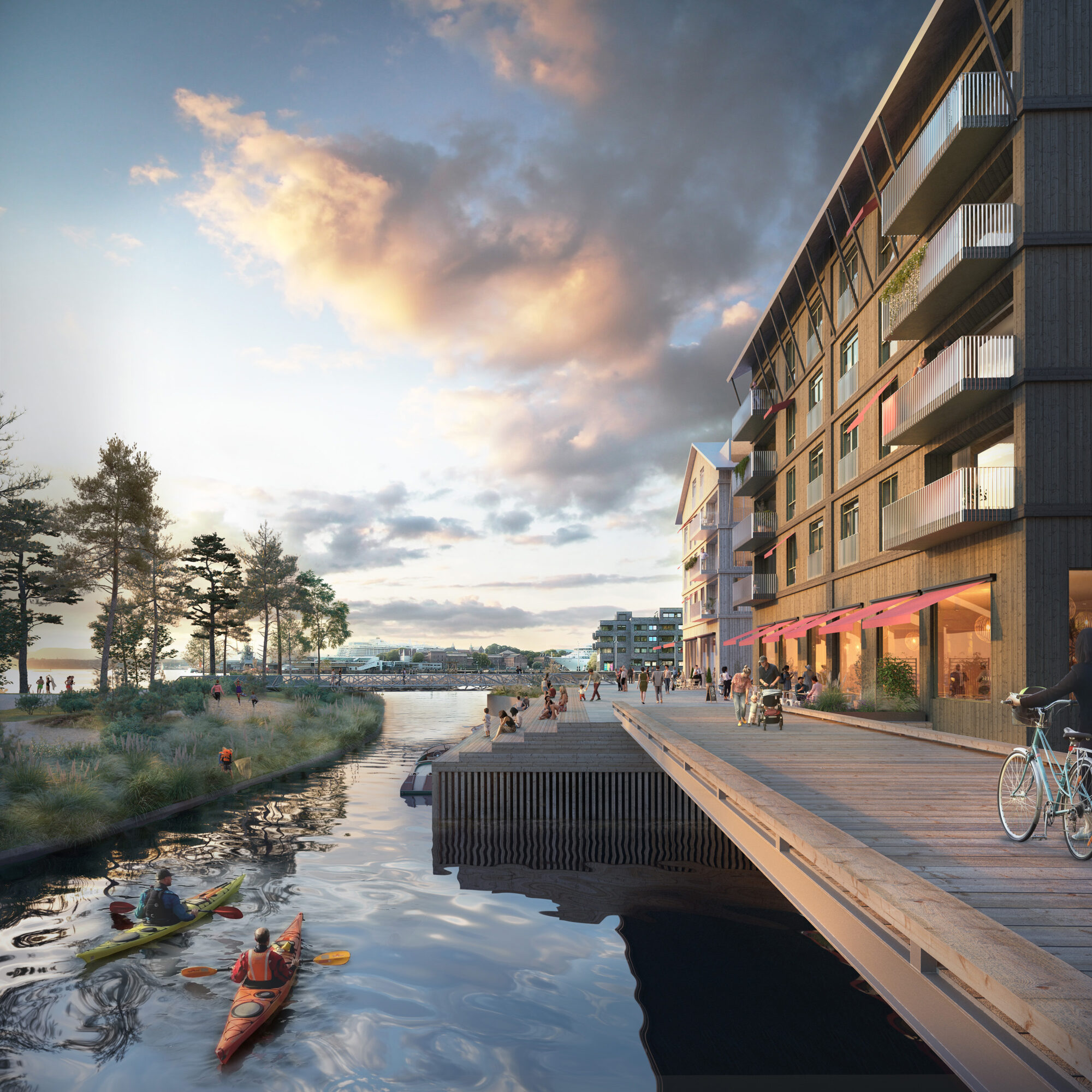 Bolig, skole/læringsarena, service og kaipromenade/park