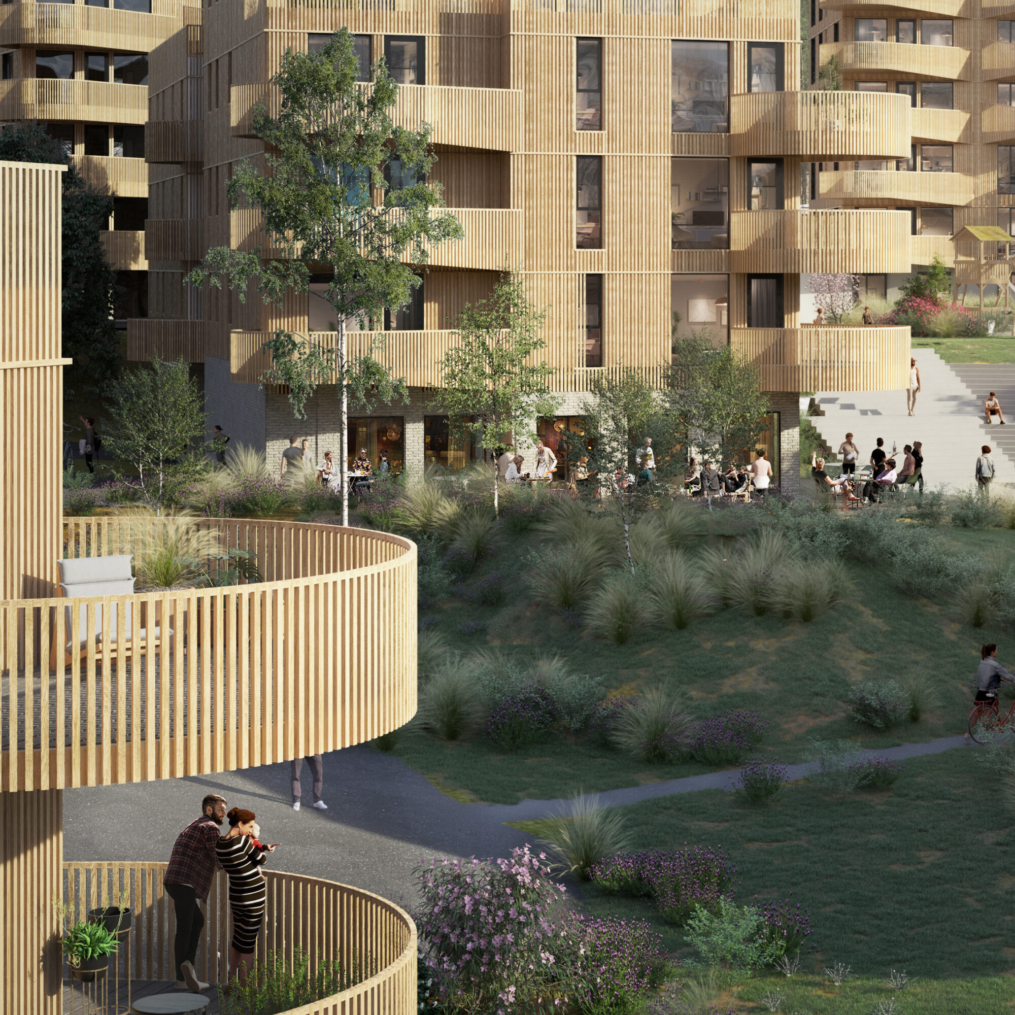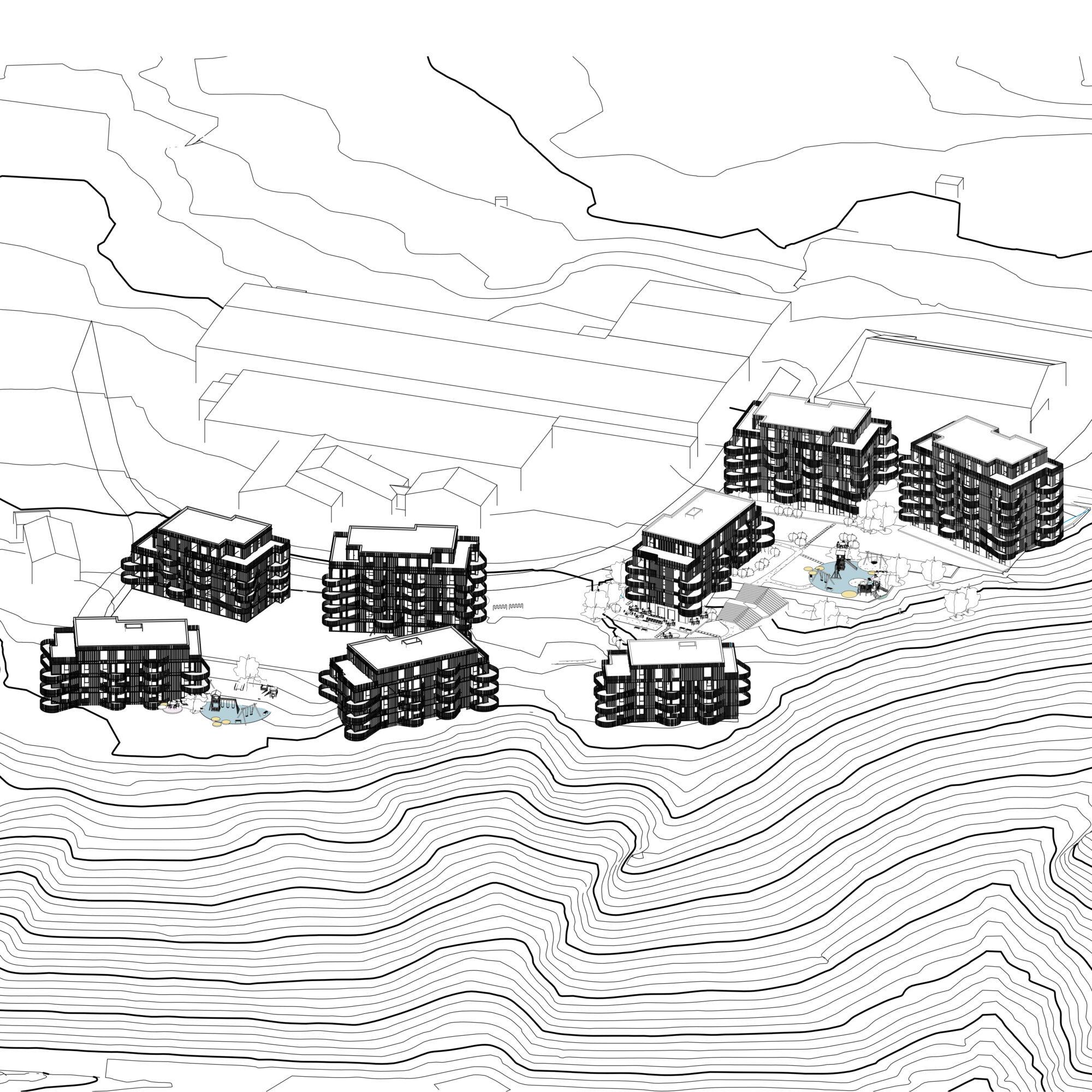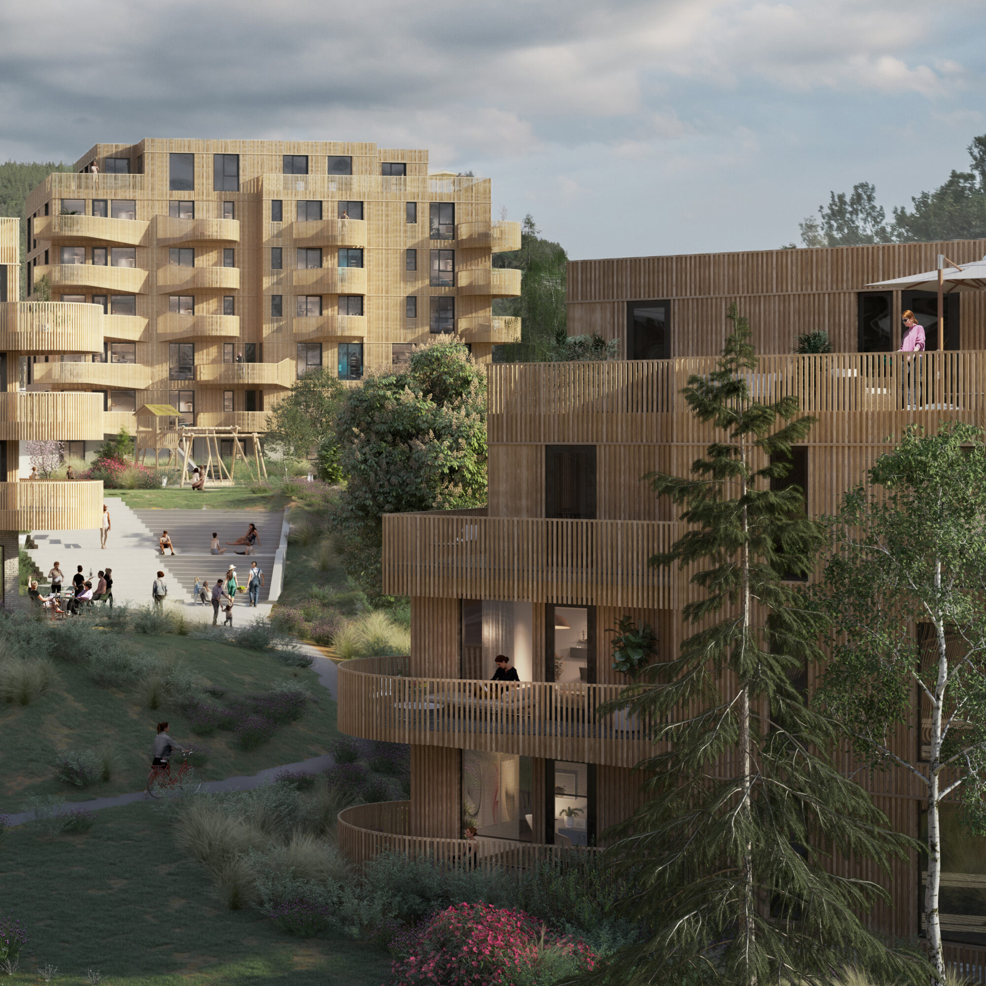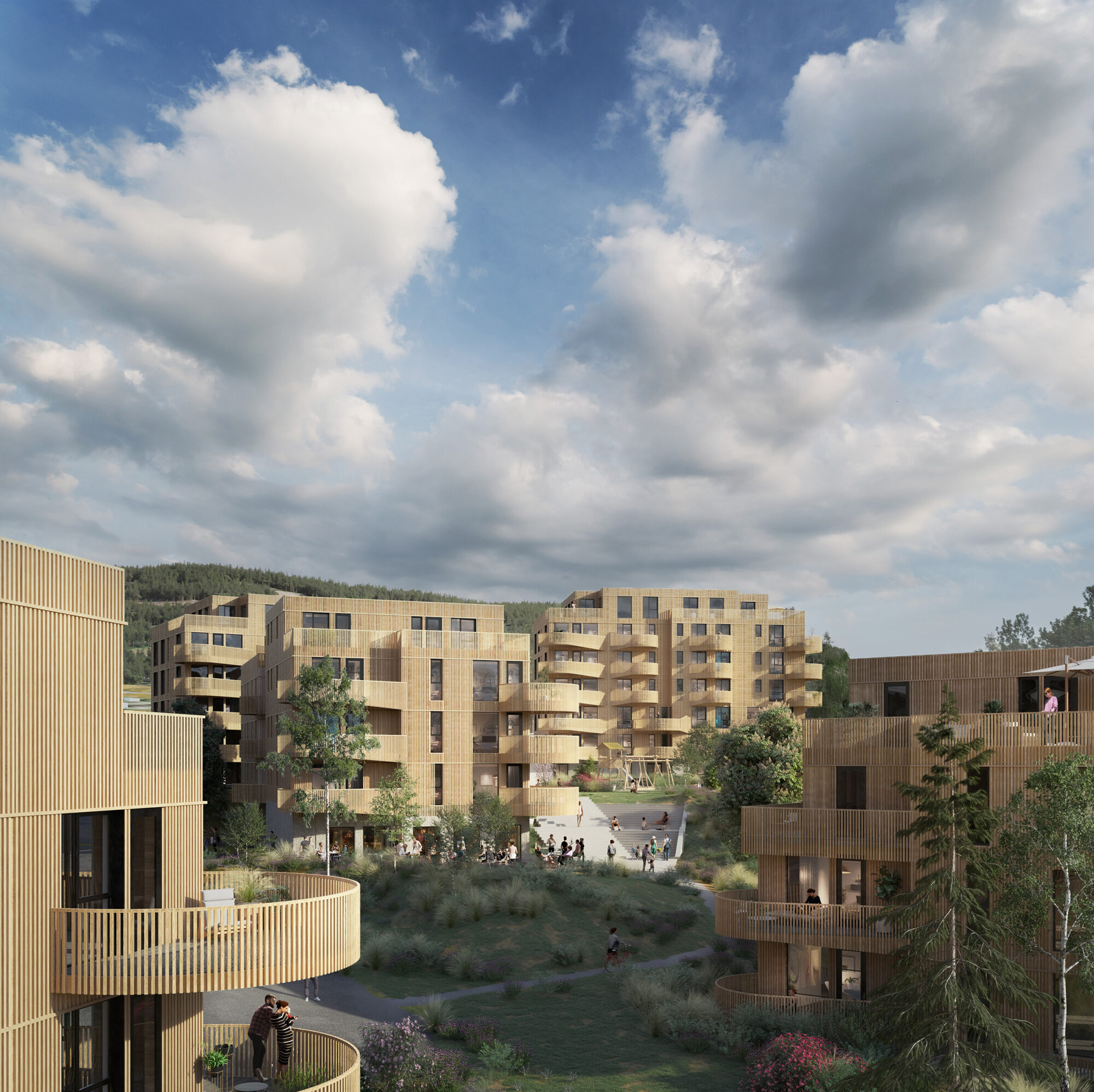 Oppgaven i parallelloppdraget har vært å tegne disse boligene og skape et attraktivt, hyggelig og åpent boligområde med sammenhengende grøntdrag, gode solforhold og siktlinjer for både beboere og besøkende.