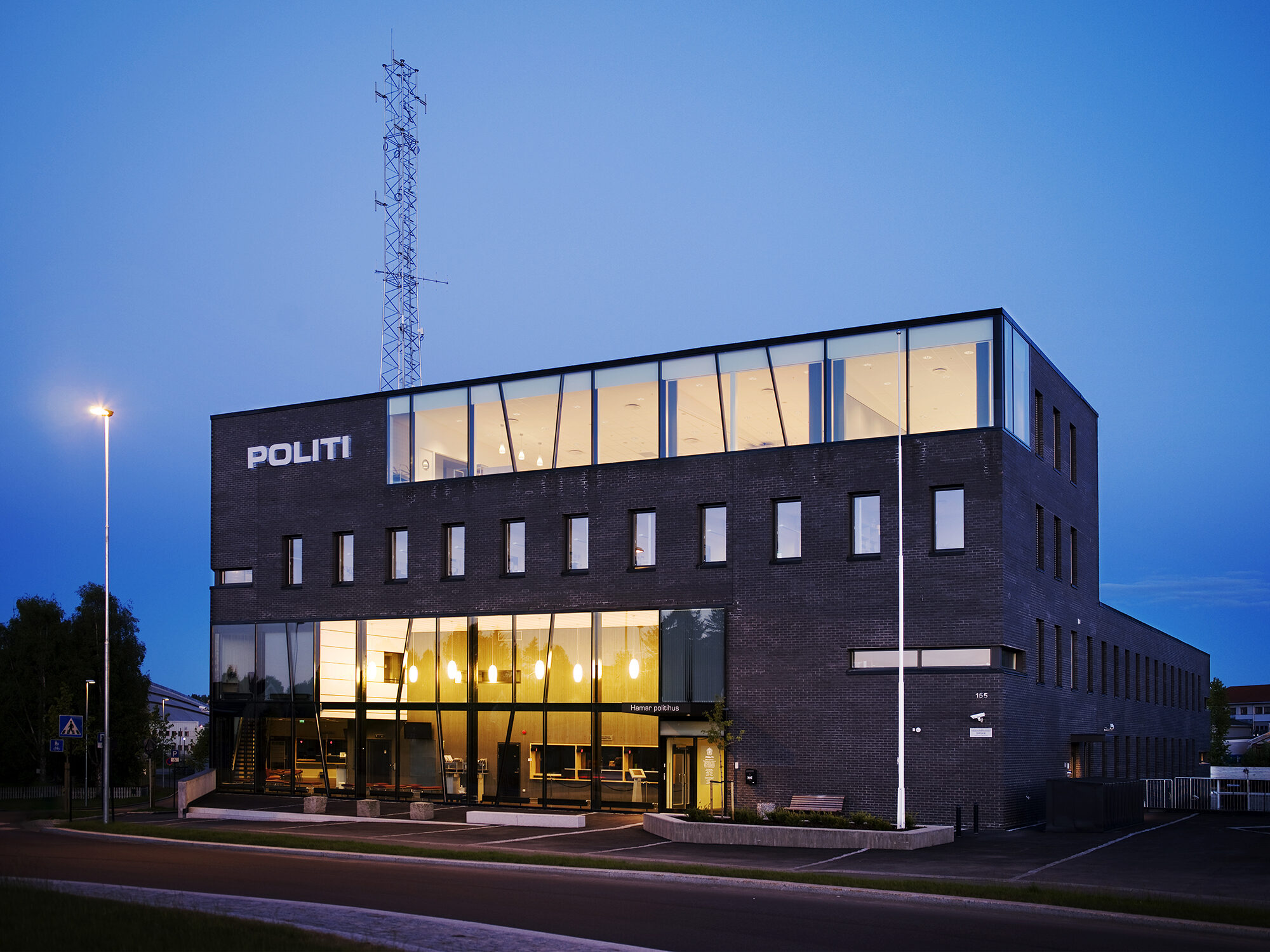 LPO har prosjektert politihuset på Hamar som rommer hovedadministrasjon for Hedmark politidistrikt og politistasjon for Hamar.