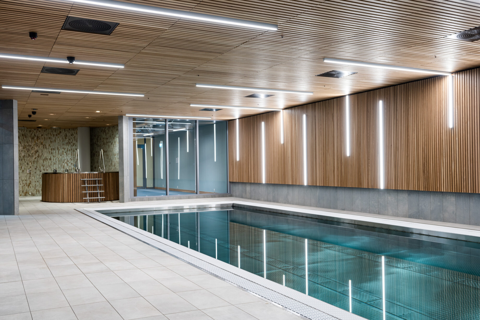 Det innerste området av Basen, også kalt “Nabostuen”, består av servicefunksjoner tilknyttet boligkonseptet Piir med tilhørende terapibasseng og treningsrom.