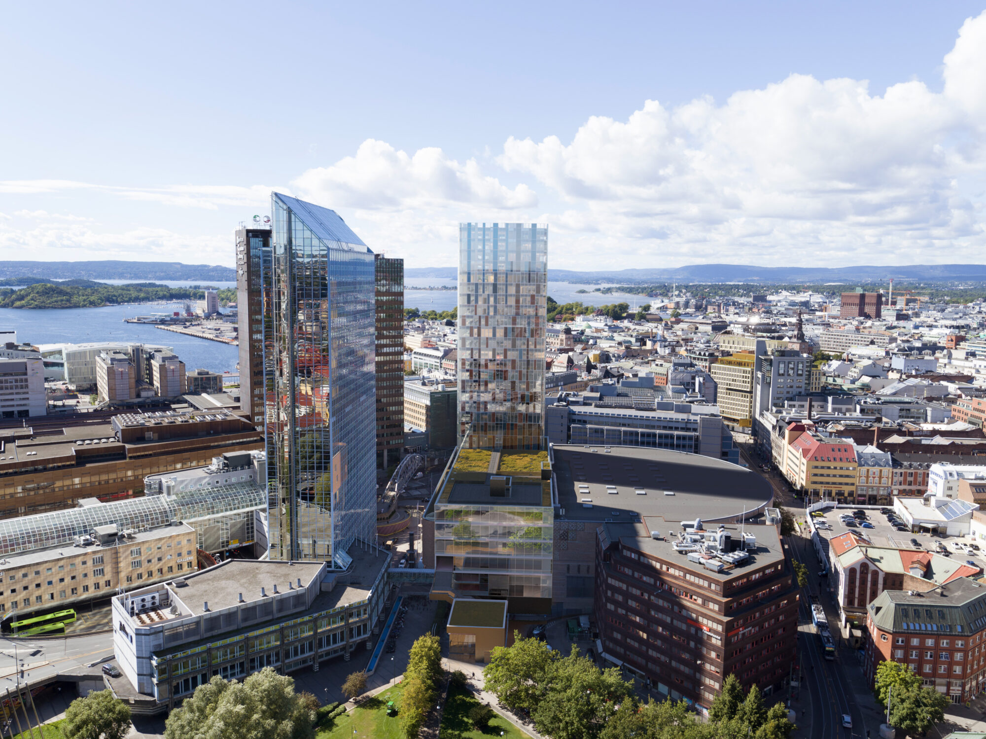 Høyhuset er utformet som en kontrast til den lavere kongressdelen, samtidig som det tar opp i seg elementer og fargebruk fra Spektrums teglfasader. Glassfasaden gis en variasjon og fargebruk som bidrar til at området får et arkitektonisk og kvalitetsmessig løft. Byen og området får et nytt urbant uterom som synliggjør hva som skjer på innsiden av bygget.
