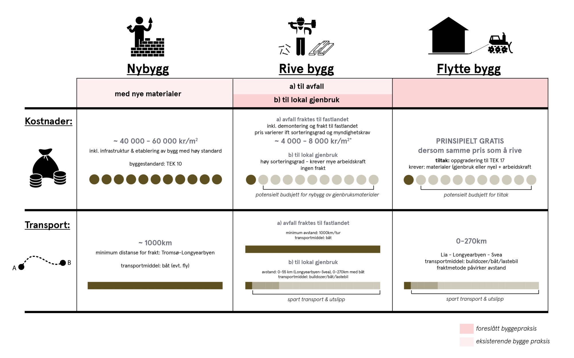 LPO har hatt et forhold til Longyearbyen og Svalbard i over 15 år. Siden 2011 har vi hatt en fysisk tilstedeværelse med eget lokalkontor i Longyearbyen. Som arkitekter og beboere på Svalbard anser vi at den lokale identiteten er ekstremt viktig i et samfunn hvor mange har en temporær tilværelse. I dette prosjektet ser vi derfor etter gode eksempler på flytting og gjenbruk av bygg. Flytting og gjenbruk av bygg betyr også ombygging og oppgradering. Prosjektet studerer prinsipper for dette.