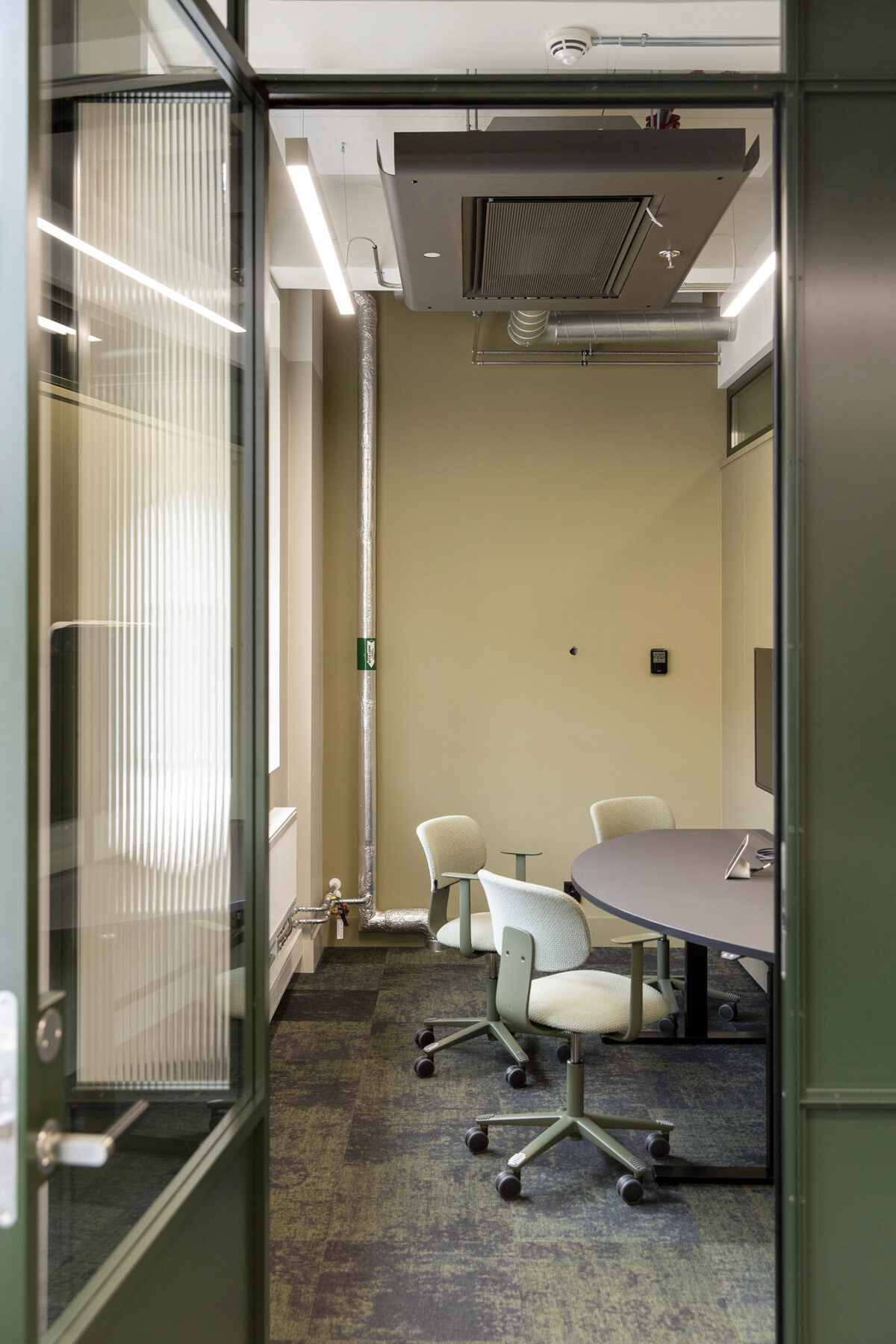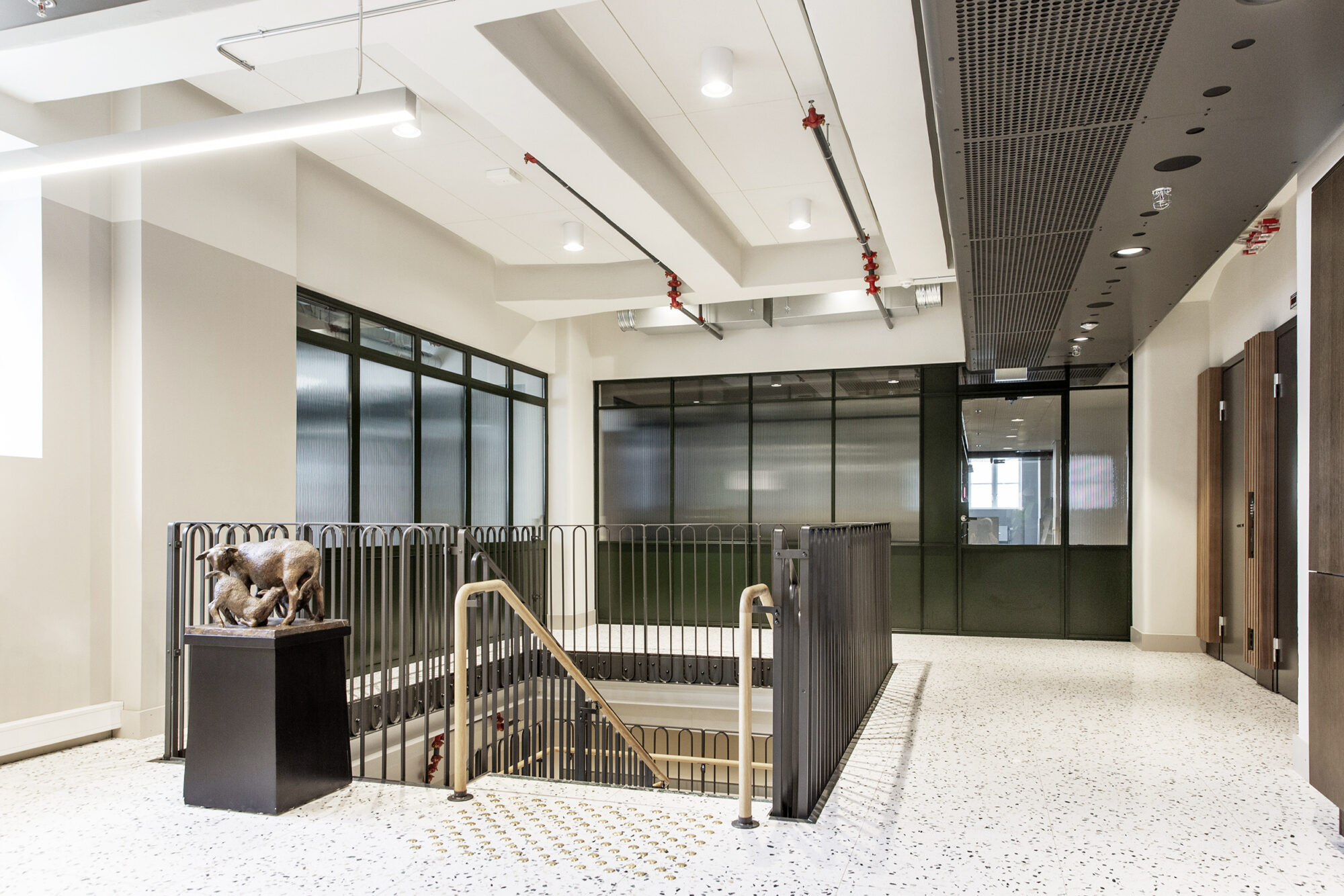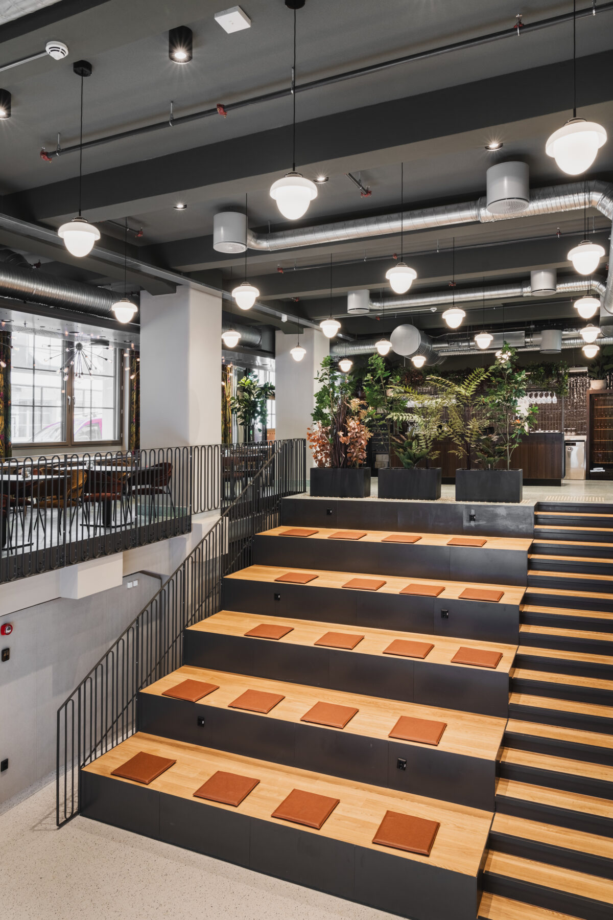 Trapperom og vestibyler er fredet. Himlingsmotiver er istandsatte og tilbakeført til originale farger. Spor etter hull i gulvet fra en tidligere heissjakt kan leses ved at terrazzoen i dette området har en annen valør enn den originale. Dører er istandsatt med teknikker brukt opprinnelig som ådring, eller erstattet med replika av originale i posisjoner der det har vært dører som er mistet. Foto: Dag SandvenI byggets første etasje er det en kantine som også kan brukes til restaurant-drift på kveldstid og i helger. Nye innganger har fått vindfang med glassvegger som bidrar til sonedeling av arealet. Foto: Dag SandvenLPO har tegnet nye lamper basert på bilder av originale lamper fra byggets opprinnelsesår. Foto: Dag SandvenDen opprinnelige hvelvdøren er renovert og har fått en ny posisjon som et smykke i kantinen. Foto: Dag SandvenEt hovedgrep for bygget har vært å åpne fasaden der det opprinnelig var lasteramper mot Schweigaardsgate i nordøst. Her er tette vegger erstattet med glassfelt som løper bak søylene for å gjøre denne åpenheten så nært opprinnelig uttrykk som mulig. Foto: Dag SandvenKontorlokalene har blitt lyse og fleksible arealer. Det har vært etterstrebet å gjøre den vakre ribbekonstruksjonen lesbar og det er derfor valgt et system med åpen teknikk der det langsgående tekniske ligger åpent over en metallflåte og ventilasjonsbaffler og annen teknikk er lagt inn mellom ribbene. Foto: Dag SandvenGlass-systemvegger er designet basert på bilder av de opprinnelige skilleveggene i bygget og det er benyttet rilleglass slik det var opprinnelig. Det er jobbet mye med en dempet material- og fargepalett som harmonerer med historien til bygget. Foto: Dag SandvenFoto: Dag SandvenEt stort atrie binder 1. etasje sammen med kjelleren. På den måten bringes lys og åpenhet ned til kjelleren og gjør det mulig å bruke det lokalet i sammenheng med kantine- og restaurant-området i plan 1. Foto: Dag SandvenDen sobre fargepaletten på de generelle kontorarealene har det vært enkelt for leietakerne å finne seg til rette i. Foto: LPO arkitekterI vestibylen i første etasje møtes man av tolletatens emblem som et minne om byggets opprinnelse. Den er tilbakeført med opprinnelige farger. Her har LPO designet en nye disk for barception inspirert av den originale resepsjonsdisken i bygningen. Foto: LPO arkitekterNy interntrapp er addert for å knytte leietakerareal sammen på tvers av etasjer. Foto: LPO arkitekterHovedadkomst for mange brukere av bygget går via sykkelparkeringen i kjelleren. Derfor er det lagt stor innsats i å gjøre den hyggelig. Når søylene fikk nytt sjikt med puss valgte vi å ikke dekke til de opprinnelige hjørneforsterkningene, men la dem få komme fram med sin patina og fortelle historien om hvordan bygget har vært brukt som mellomstopp for varer til fortolling. Foto: LPO arkitekterSchweigaardsgate er et strøk av byen som er i transformasjon. Bygningen er satt i stand og er klar for å ta imot de endringene som kommer. Foto: EntraBygningens eksteriør er fredet i sin helhet og vindusdetaljer og ornamentikk i fasaden er tilbakeført til sin opprinnelige fargesetting med originale malingstyper og teknikker. Foto: Entra
