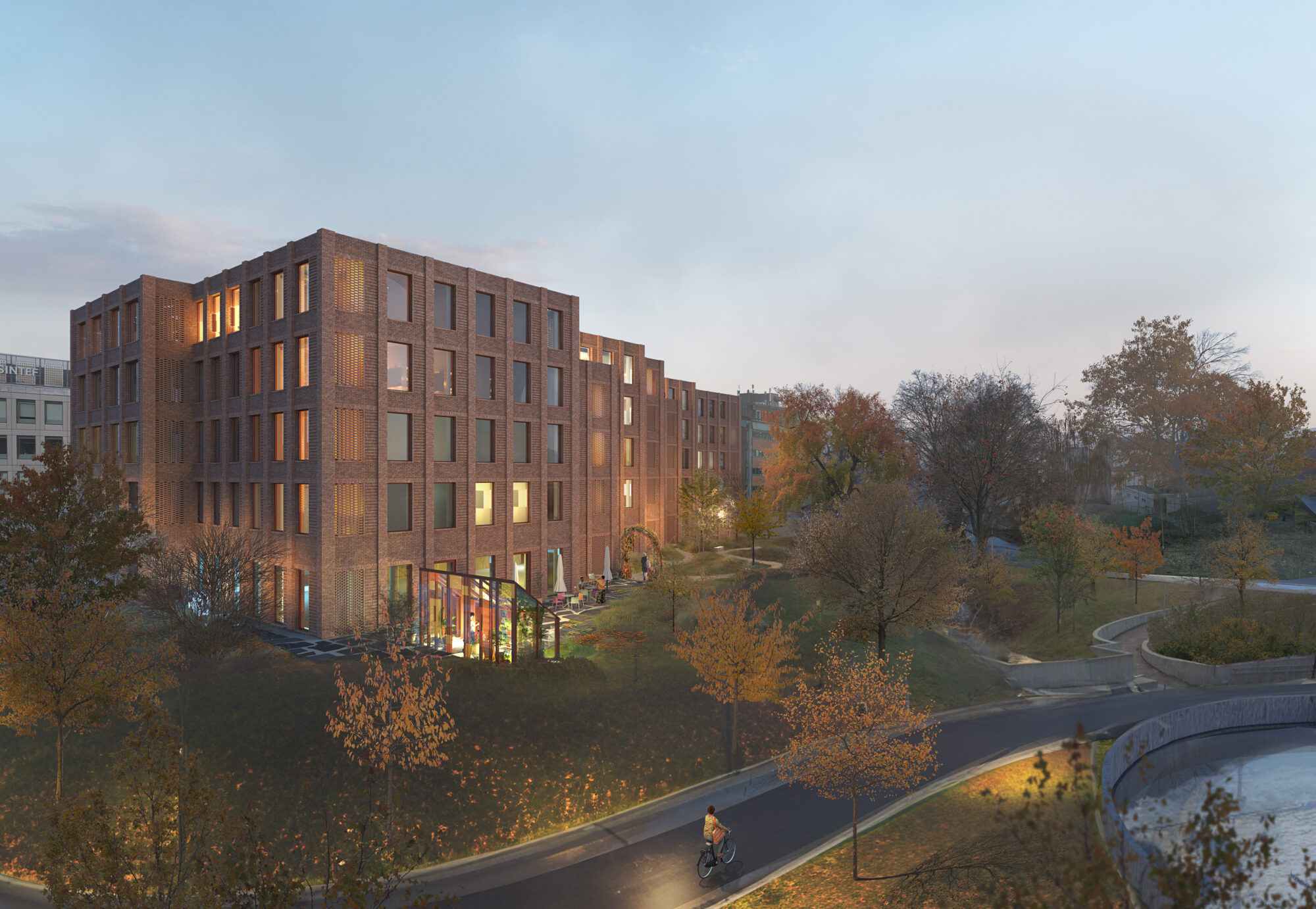 Bæresystemet planlegges i sin helhet utført i ekstrem lavkarbon betong, både prefabkomponenter og det plasstøpte. I kombinasjon med fasader i ombrukt tegl gir dette bygget lavest tenkelig klimagassutslipp. Som naturmateriale har tegl, også den ombrukte, høy kvalitet og tilnærmet ubegrenset levetid. Innvendige materialer vil så langt det er mulig være naturmaterialer, basert på ombruk med lave utslipp. Med brønnpark og solceller som energikilder vil bygget holde passivhus standard. Bygget er prosjektert for miljøsertifisering i Breeam, klasse Outstanding.