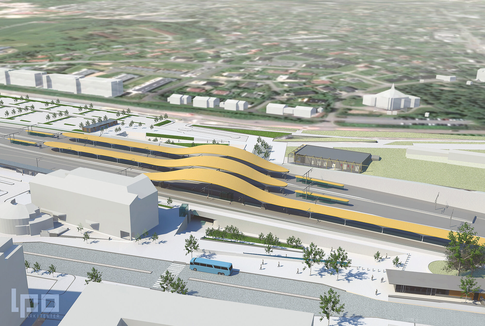 De bueformede plattformtakene er utformet for å forsterke øst-vest forbindelsen visuelt.