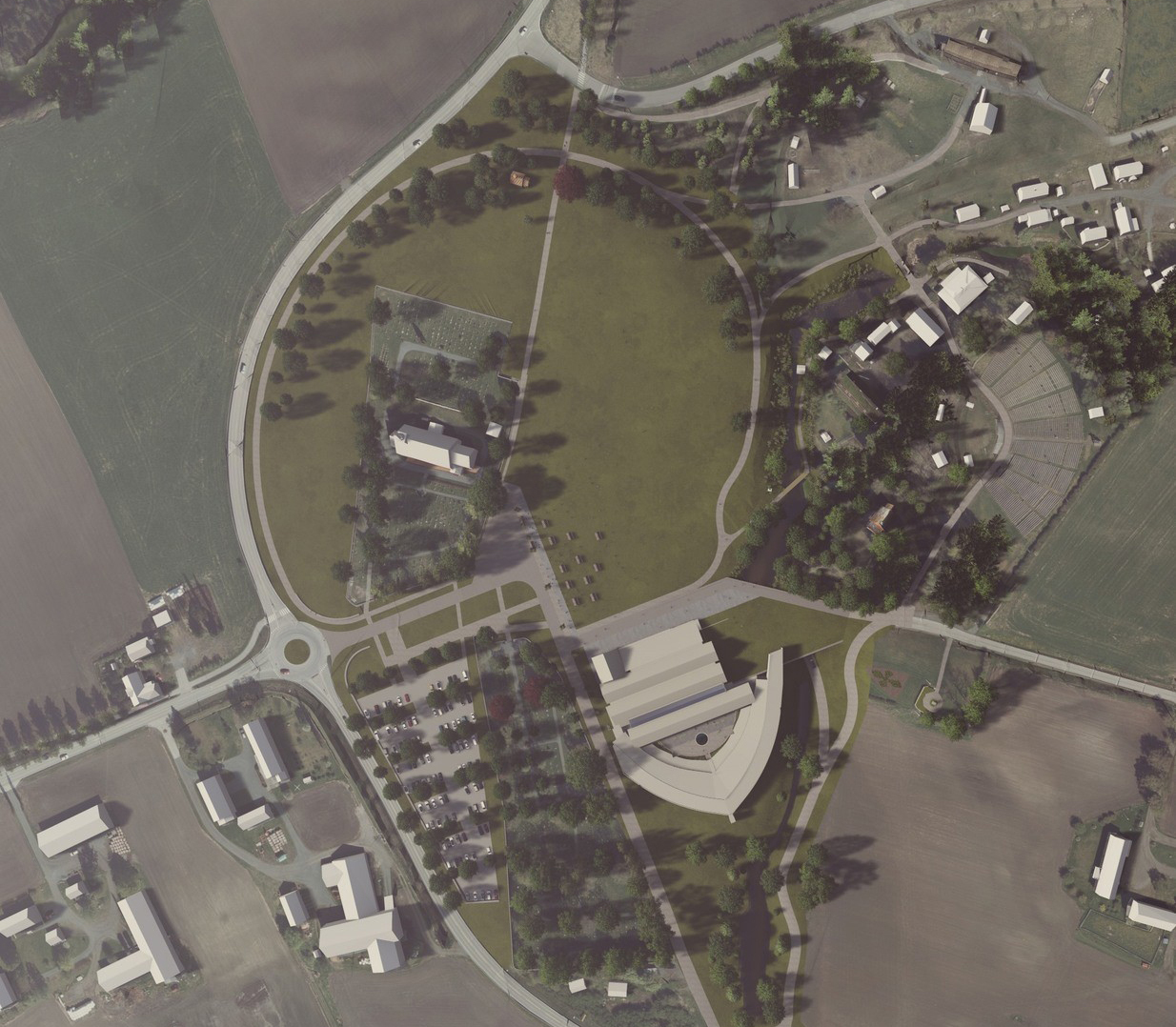 Landskapskonseptet foreslår å gi Stiklestad en parkmessig utforming som iscenesetter slagstedet og skaper en helhetlig ramme for opplevelser, formidling og refleksjon.