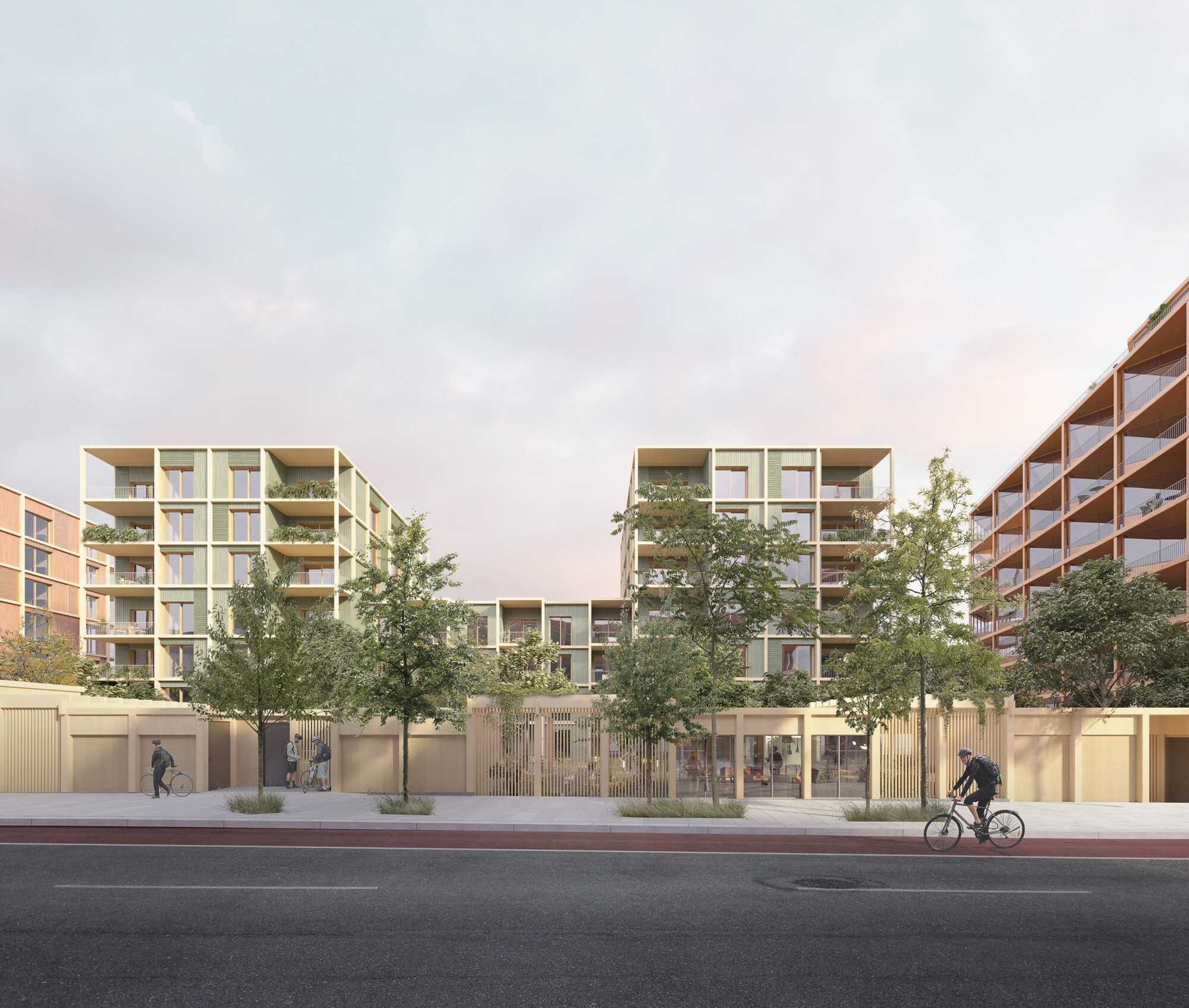 Totalt foreslås rundt 8500 kvm bolig, noe som vil gi ca. 100 boliger i varierte størrelser. Alle leiligheter vil få private uteoppholdsarealer, balkong og mark- eller takterrasse. Over den lave næringsdelen foreslås et stort felles uteareal. Arealet er stort og sammenhengende og kan tilrettelegges for ulik type lek og opphold for ulike aldersgrupper, og kan kobles direkte til boligene over den indre bygaten.