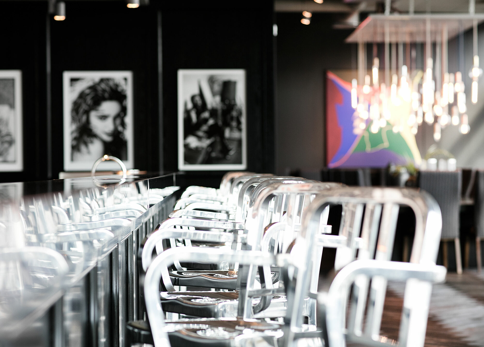 Glassfasadene er preget med påtrykk som tjener som solavskjerming og kaster skygger inn i interiøret. Keramiske skulpturer markerer inngangene og resepsjonsdiskene innenfor er også utformet i keramikk. I interiøret er det benyttet enkle, solide materialer: betong, stål og slemmet tegl med innslag av tre og grønne planter. En rekke elementer er utformet spesielt for dette bygget.