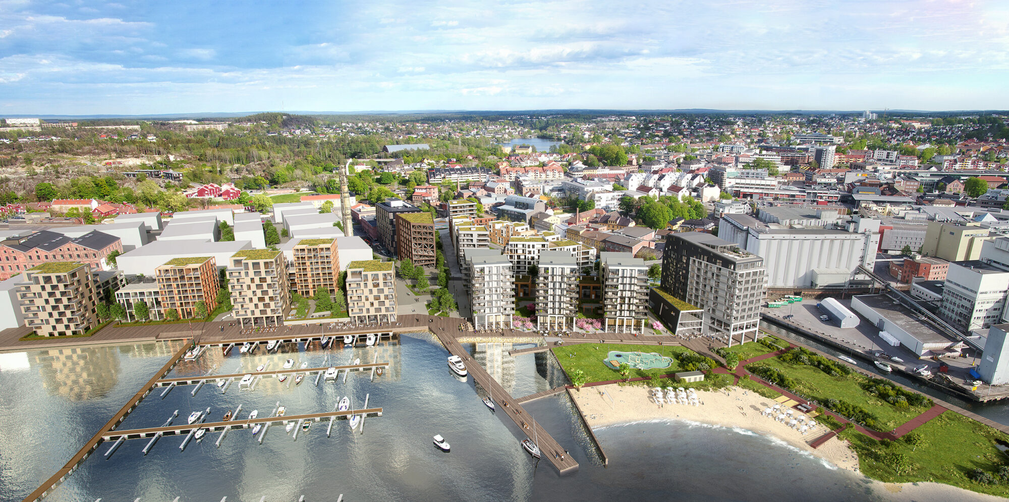Da papirfabrikken Peterson & Sønn i 2012 ble nedlagt så Höegh Eiendom en mulighet til å utvikle den gamle industritomten til en ny bydel med attraktiv beliggenhet inntil Moss sentrum. LPO arkitekter har utviklet sjøfronten som inkluderer boliger med næring på bakkeplan, samt et hotell med strandpromenade. Det er også etablert en park med bystrand i forlengelse av promenaden foran hotellet.